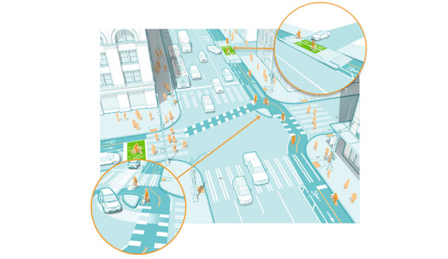 We took the project from concept to final construction plans during an accelerated, nine-month schedule. The resulting project sets the standard for innovative green streets, bikeway design, storm water management, placemaking, public art, and wayfinding.